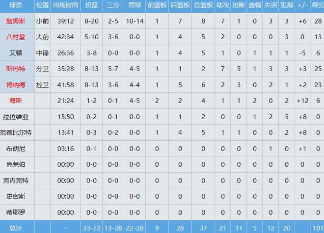 新版三巨头詹姆斯+斯玛特+肯纳德,合砍76分16板16助9断。